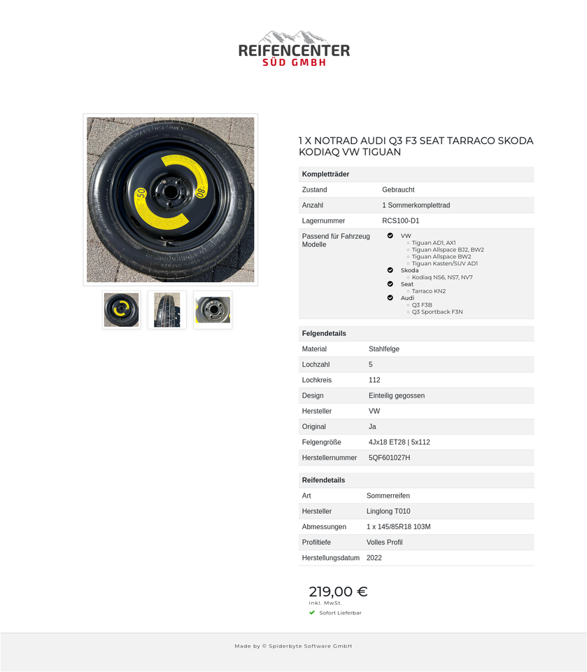 1 X NOTRAD AUDI Q3 F3 SEAT TARRACO SKODA KODIAQ VW TIGUAN