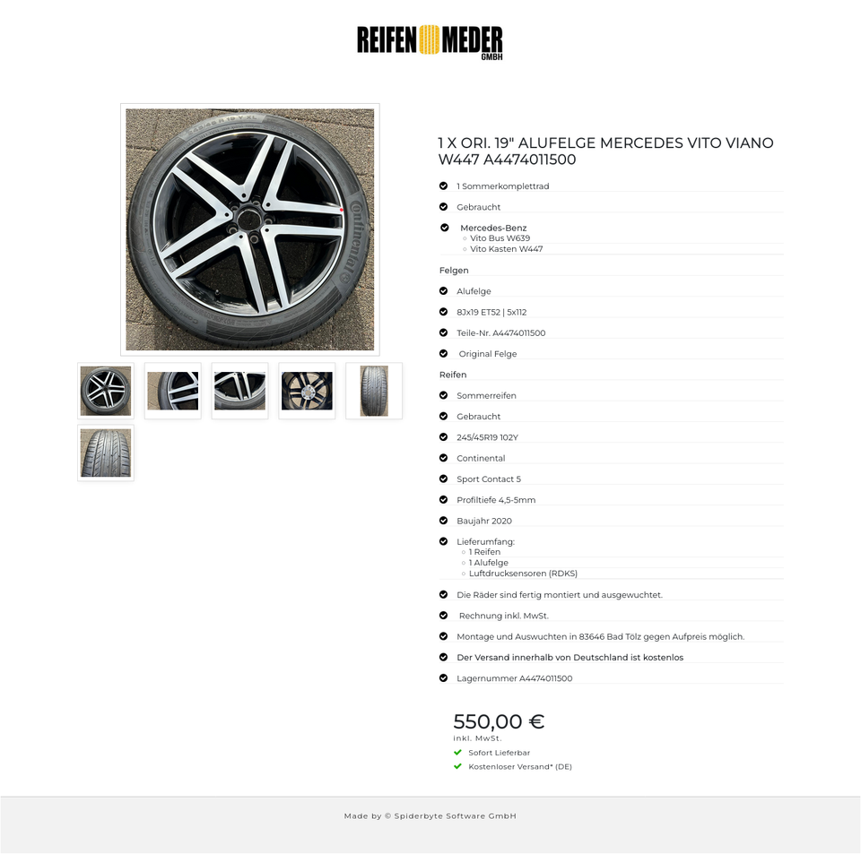 ★ KOSTENLOSER – VERSAND ★ Zum Verkauf steht ein gebrauchtes original Mercedes-Benz Alu Sommerkomplettrad für die Modelle Mercedes-Benz – Vito Bus W639 – Vito Kasten W447 mit dem Sommerreifen in der Größe 245/45R19 102Y Continental Sport Contact…