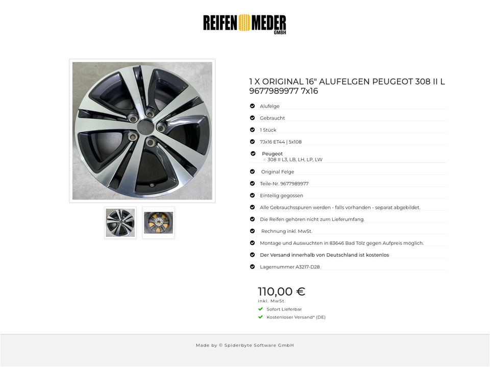 ★ KOSTENLOSER – VERSAND ★ Zum Verkauf steht eine gebrauchte original Peugeot Alufelge für die Modelle Peugeot – 308 II L3, LB, LH, LP, LW in der Größe 7Jx16H2 ET44 LZ5 LK108 Teile-Nr. 9677989977 Die Felge ist gebraucht. Alle Gebrauchsspuren wu…