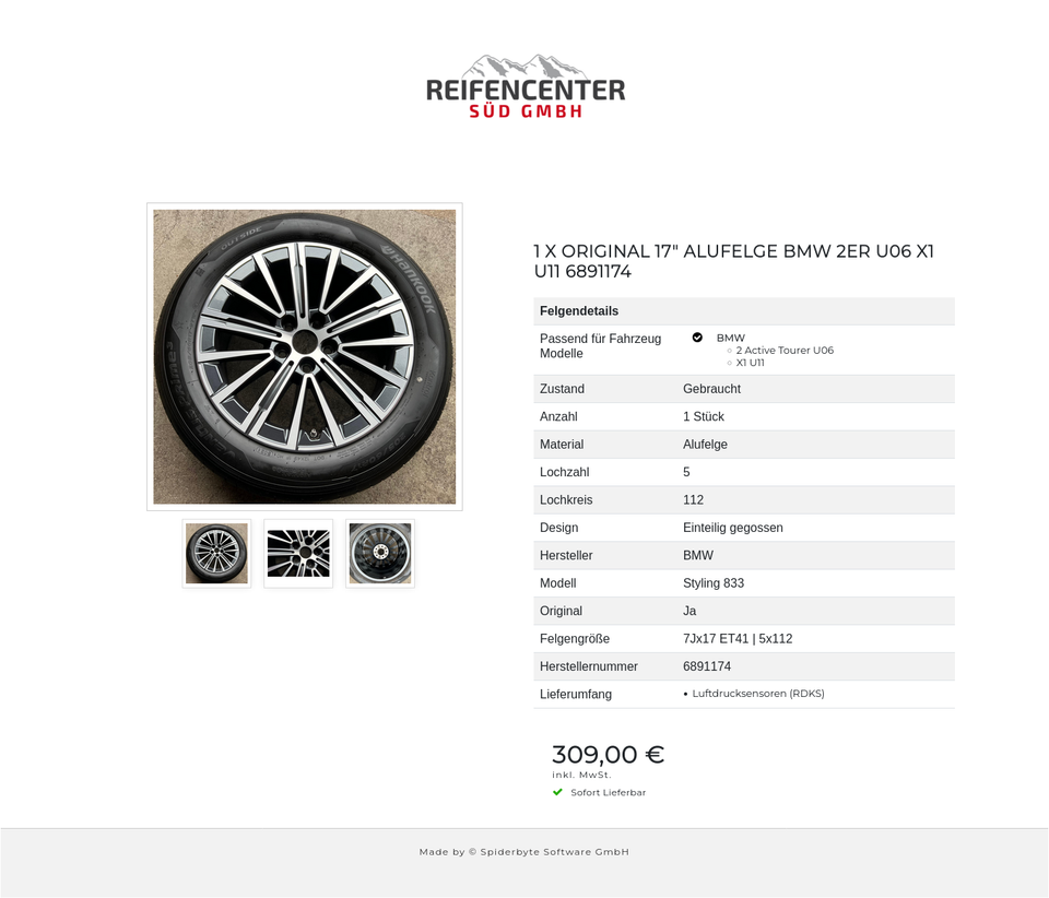 Montage und Auswuchten in Bad Tölz 83646 gegen Aufpreis möglich.