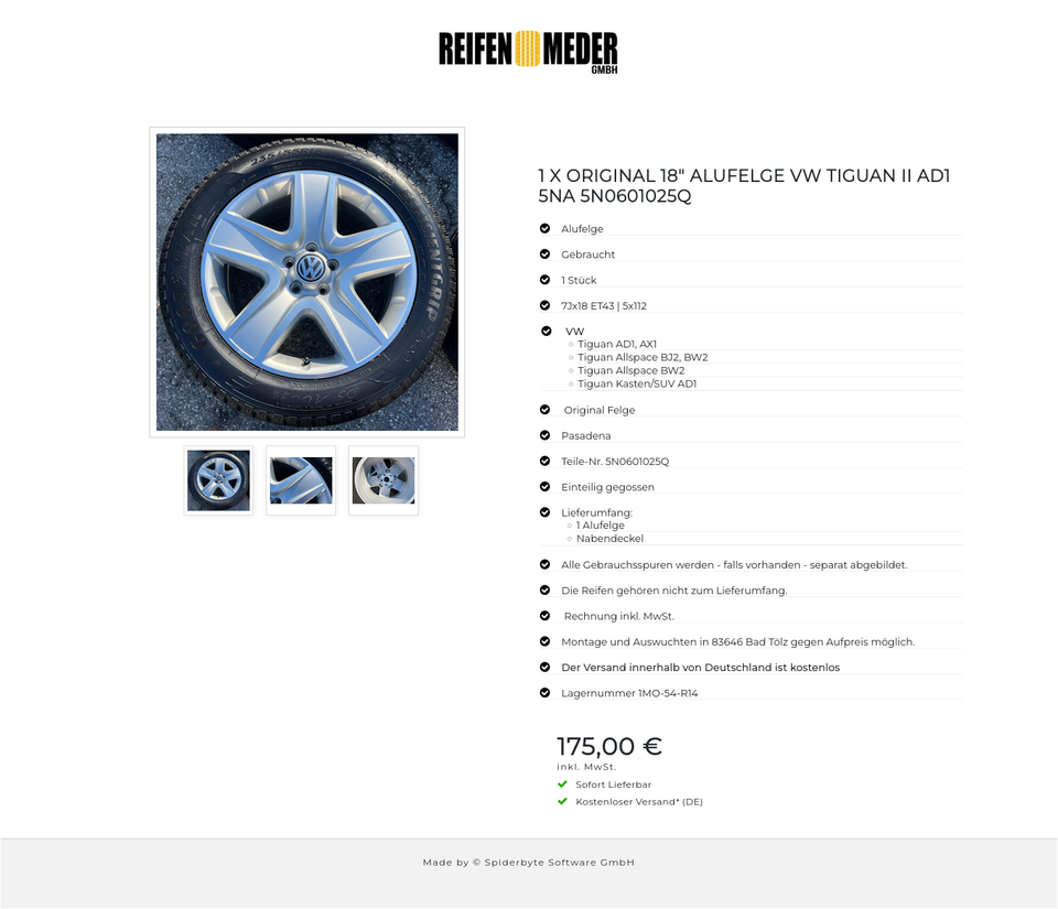 Gerne kann die Felge auch abgeholt werden.