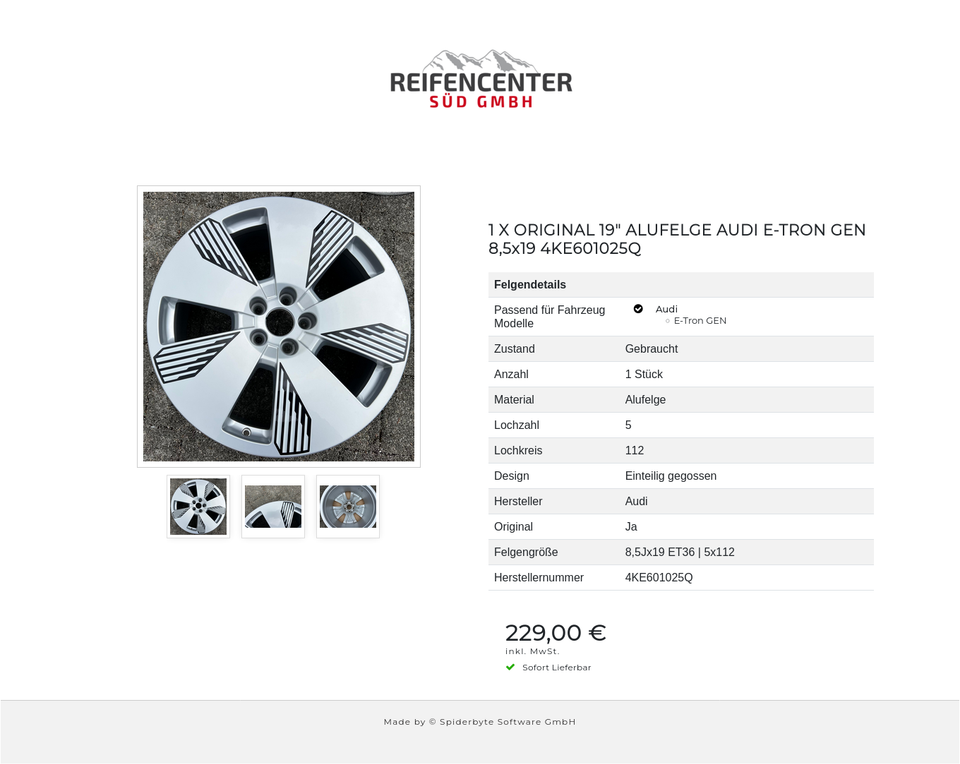1 X ORIGINAL 19″ ALUFELGE AUDI E-TRON GEN 8,5×19 4KE601025Q