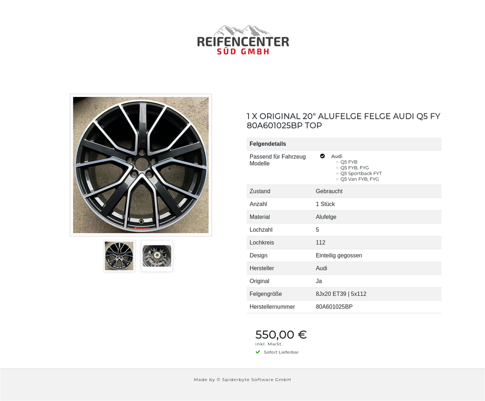 ► KOSTENLOSER VERSAND ◄ 1 X ORIGINAL 20″ ALUFELGE FELGE AUDI Q5 FY 80A601025BP TOP _________________________________________________________ Felgendetails: Passend für folgende Fahrzeug Modelle: Audi – Q5 FYB – Q5 FYB, FYG – Q5 Sportback FYT – …