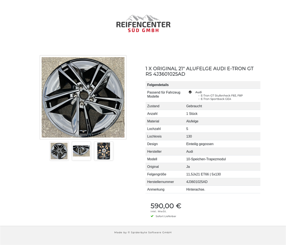 1 X ORIGINAL 21″ ALUFELGE AUDI E-TRON GT RS 4J3601025AD