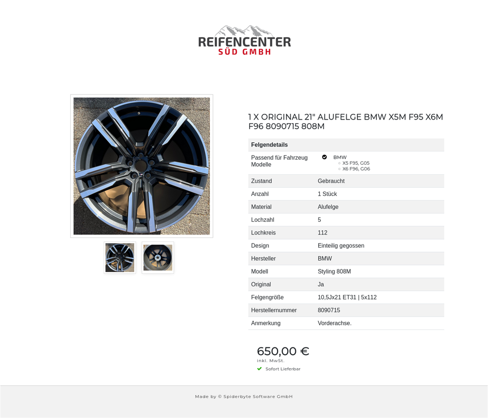 1 X ORIGINAL 21″ ALUFELGE BMW X5M F95 X6M F96 8090715 808M