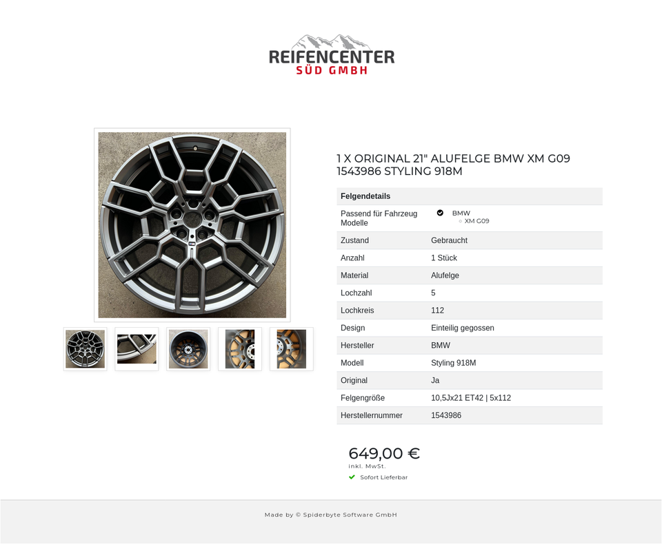 1 X ORIGINAL 21″ ALUFELGE BMW XM G09 1543986 STYLING 918M