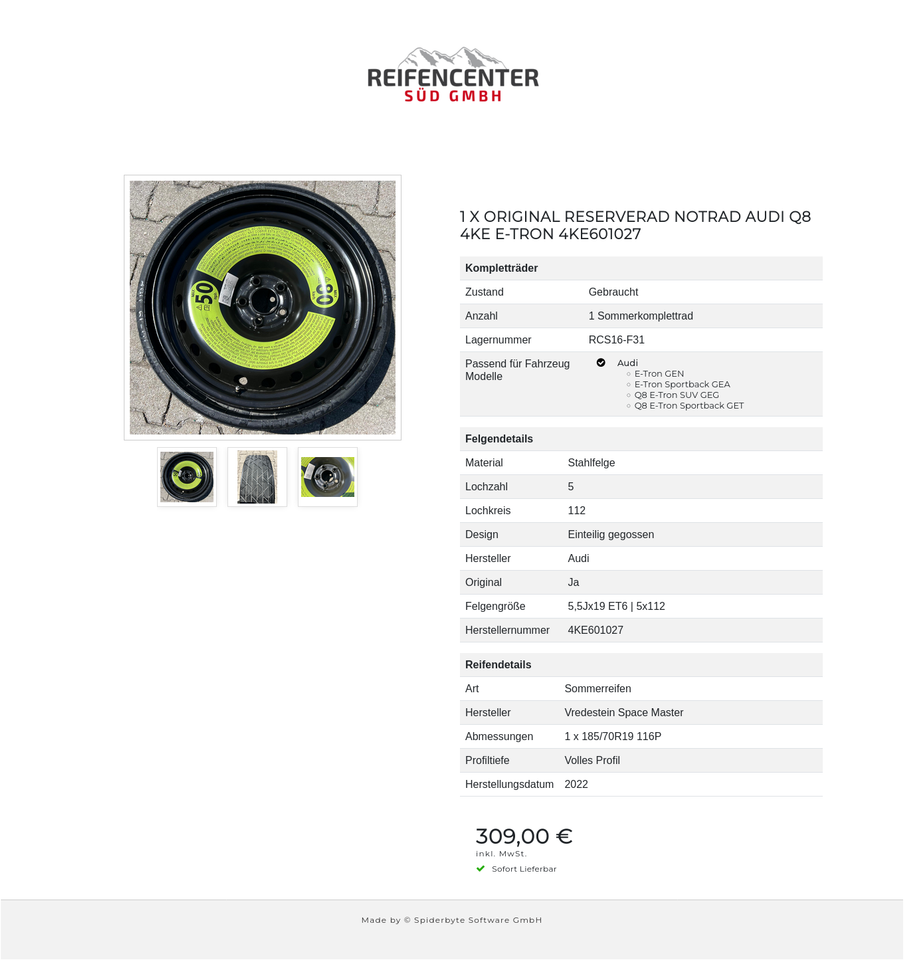 1 X ORIGINAL RESERVERAD NOTRAD AUDI Q8 4KE E-TRON 4KE601027