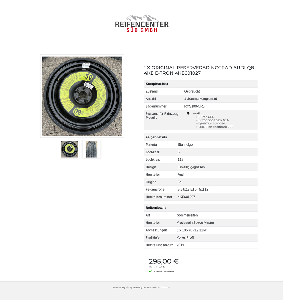 Schreibe die erste Rezension für „1 X ORIGINAL RESERVERAD NOTRAD AUDI Q8 4KE E-TRON 4KE601027 #20GT“
