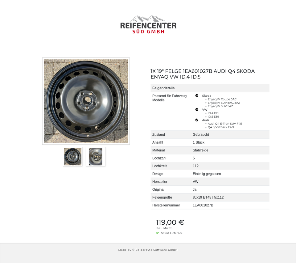 1X 19″ FELGE 1EA601027B AUDI Q4 SKODA ENYAQ VW ID.4 ID.5