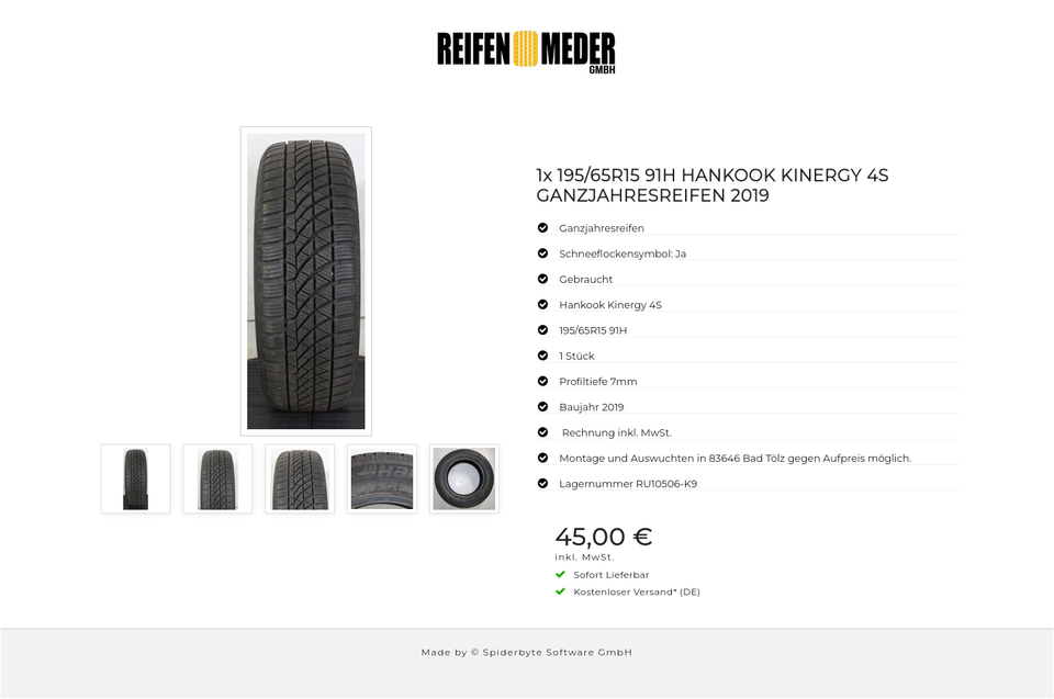 ★ KOSTENLOSER – VERSAND ★ Zum Verkauf steht ein gebrauchter Ganzjahresreifen in der Größe 195/65R15 91H vom Hersteller Hankook im Profil Kinergy 4S mit Schneeflockensymbol Der Reifen ist aus der Produktion 2019. Die Profiltiefe beträgt 7mm….