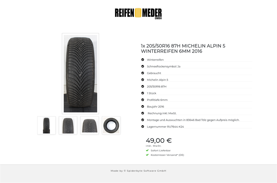 ★ KOSTENLOSER – VERSAND ★ Zum Verkauf steht ein gebrauchter Winterreifen in der Größe 205/50R16 87H vom Hersteller Michelin im Profil Alpin 5 mit Schneeflockensymbol Der Reifen ist aus der Produktion 2016. Die Profiltiefe beträgt 6mm. Die …