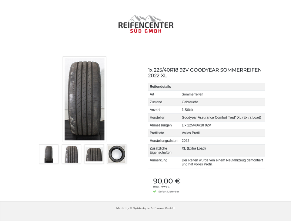 ► Anmerkung: Der Reifen wurde von einem Neufahrzeug demontiert und hat volles Profil.