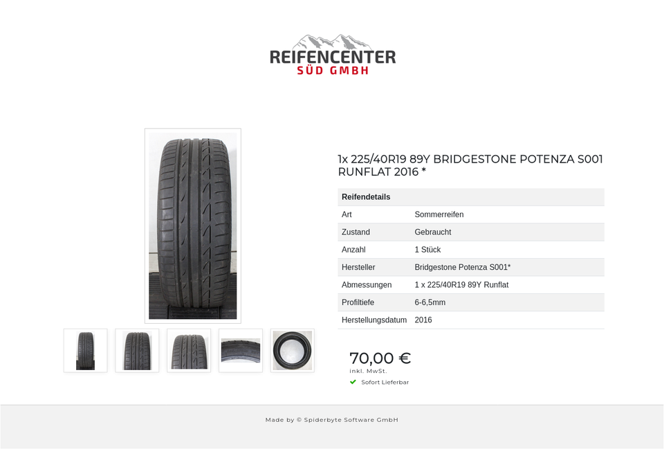 ► KOSTENLOSER VERSAND ◄ 1x 225/40R19 89Y BRIDGESTONE POTENZA S001 RUNFLAT 2016 * _________________________________________________________ Reifendetails: ► Zustand: Gebraucht ► Anzahl: 1 Stück ► Spezifikation: Sommerreifen ► Reifengrösse: 225/4…