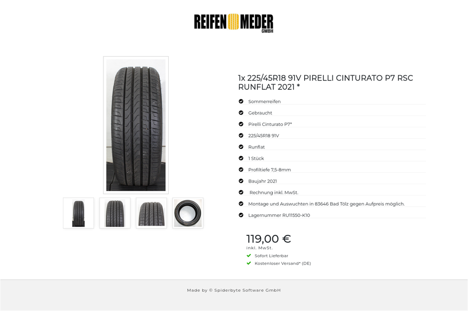 ★ KOSTENLOSER – VERSAND ★ Zum Verkauf steht ein gebrauchter Sommerreifen in der Größe 225/45R18 91V vom Hersteller Pirelli im Profil Cinturato P7* Runflat Der Reifen ist aus der Produktion 2021. Die Profiltiefe beträgt 7,5-8mm. Die Bezahlun…