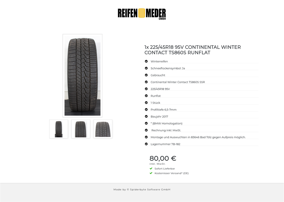 ★ KOSTENLOSER – VERSAND ★ Zum Verkauf steht ein gebrauchter Winterreifen in der Größe 225/45R18 95V vom Hersteller Continental im Profil Winter Contact TS860S SSR * (BMW Homologation) Runflat mit Schneeflockensymbol Der Reifen ist aus der P…