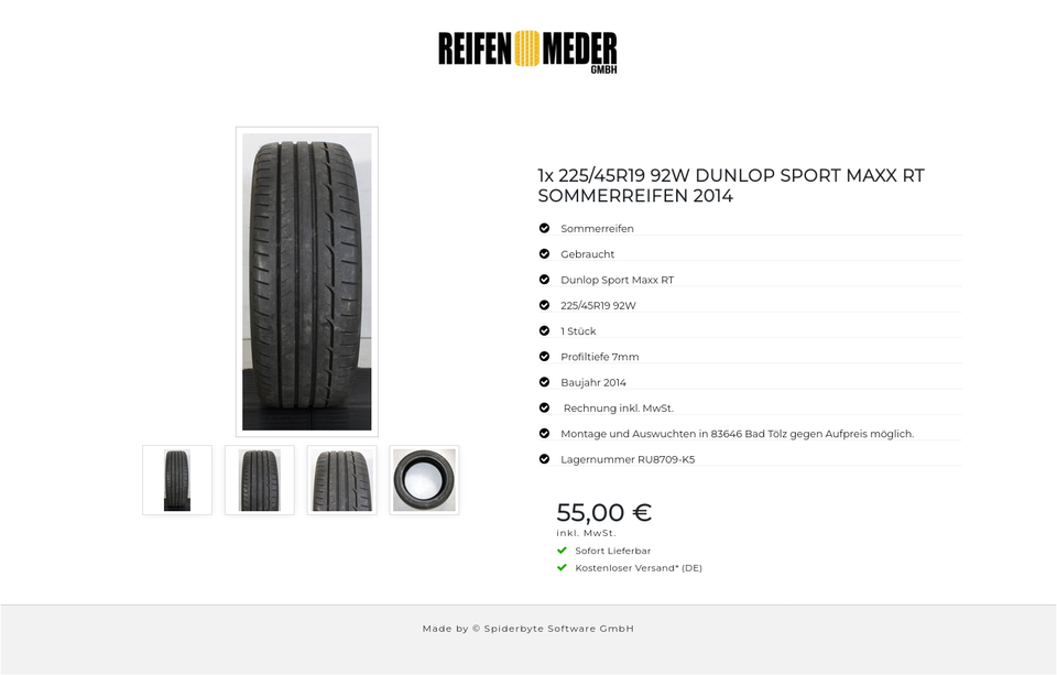 ★ KOSTENLOSER – VERSAND ★ Zum Verkauf steht ein gebrauchter Sommerreifen in der Größe 225/45R19 92W vom Hersteller Dunlop im Profil Sport Maxx RT Der Reifen ist aus der Produktion 2014. Die Profiltiefe beträgt 7mm. Die Bezahlung ist durch B…