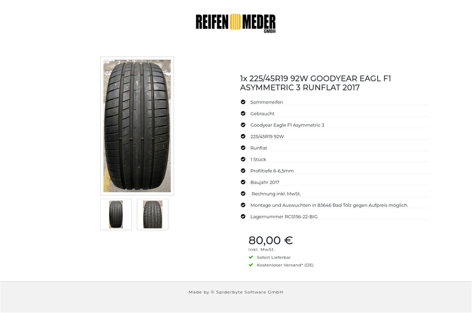 ★ KOSTENLOSER – VERSAND ★ Zum Verkauf steht ein gebrauchter Sommerreifen in der Größe 225/45R19 92W vom Hersteller Goodyear im Profil Eagle F1 Asymmetric 3 Runflat Der Reifen ist aus der Produktion 2017. Die Profiltiefe beträgt 6-6,5mm. Die…