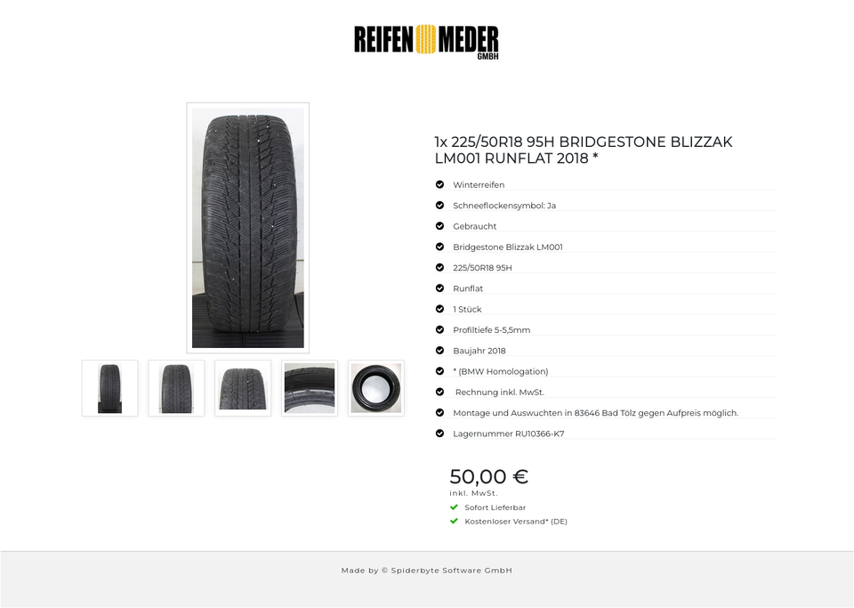 ★ KOSTENLOSER – VERSAND ★ Zum Verkauf steht ein gebrauchter Winterreifen in der Größe 225/50R18 95H vom Hersteller Bridgestone im Profil Blizzak LM001 * (BMW Homologation) Runflat mit Schneeflockensymbol Der Reifen ist aus der Produktion 20…