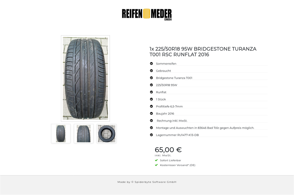 ★ KOSTENLOSER – VERSAND ★ Zum Verkauf steht ein gebrauchter Sommerreifen in der Größe 225/50R18 95W vom Hersteller Bridgestone im Profil Turanza T001 Runflat Der Reifen ist aus der Produktion 2016. Die Profiltiefe beträgt 6,5-7mm. Die Bezah…