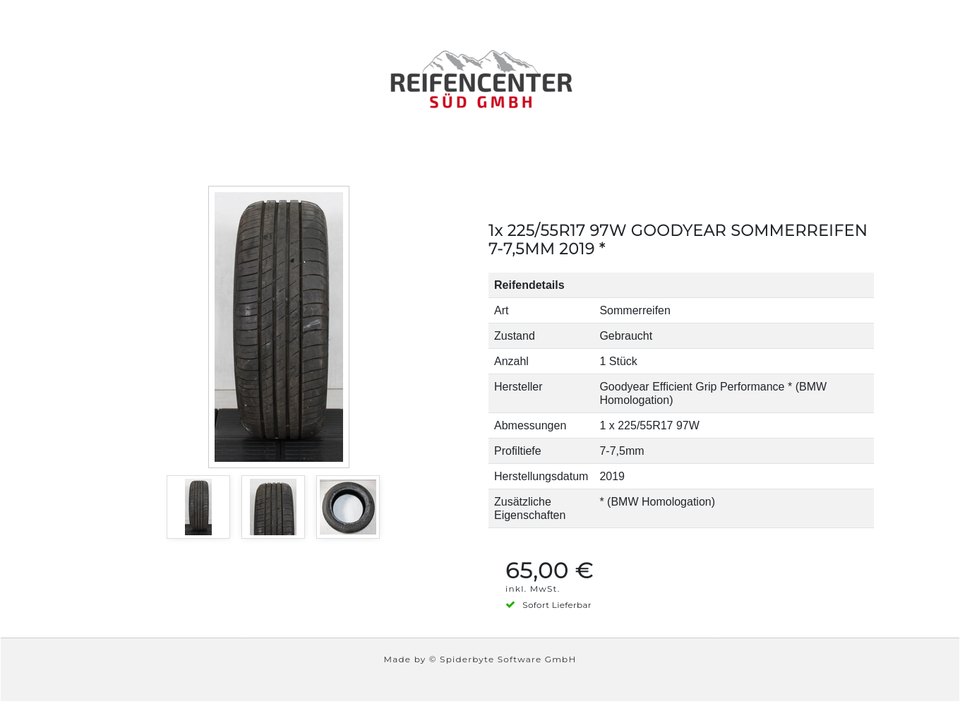 1x 225/55R17 97W GOODYEAR SOMMERREIFEN 7-7,5MM 2019 *