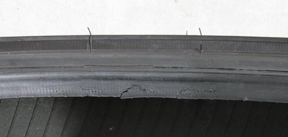 Der Reifen hat eine kleine Abschürfung an der Wulst. (siehe Bild)