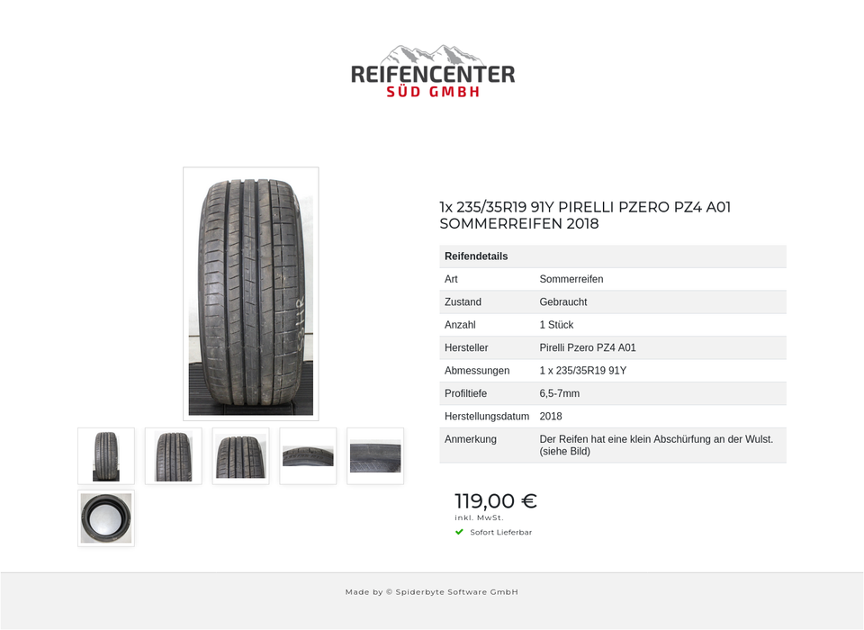 ► Anmerkung: Der Reifen hat eine klein Abschürfung an der Wulst. (siehe Bild)