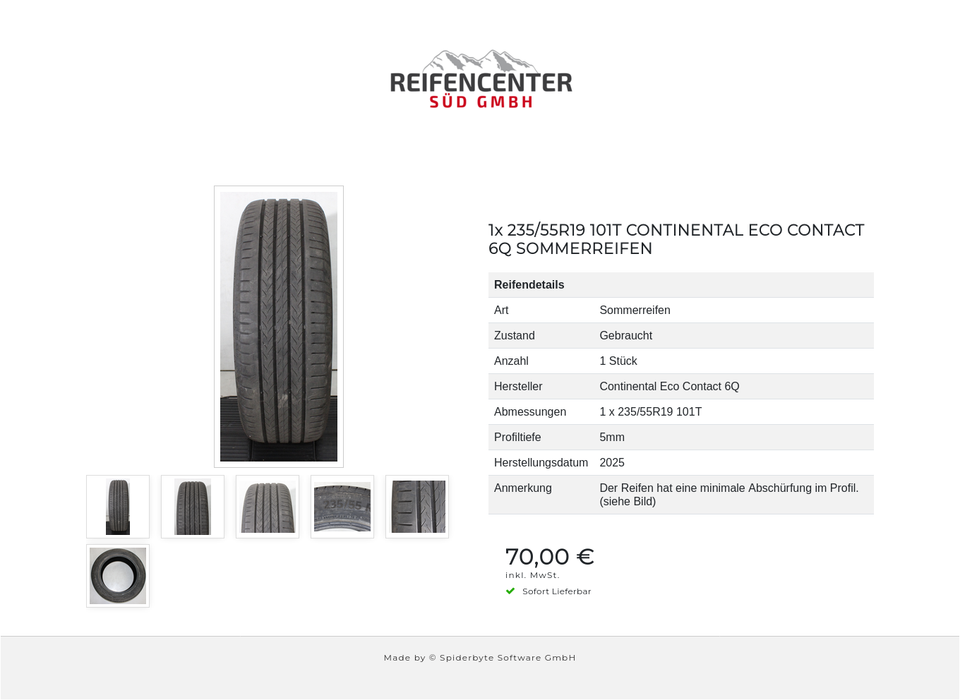 ► Anmerkung: Der Reifen hat eine minimale Abschürfung im Profil. (siehe Bild)
