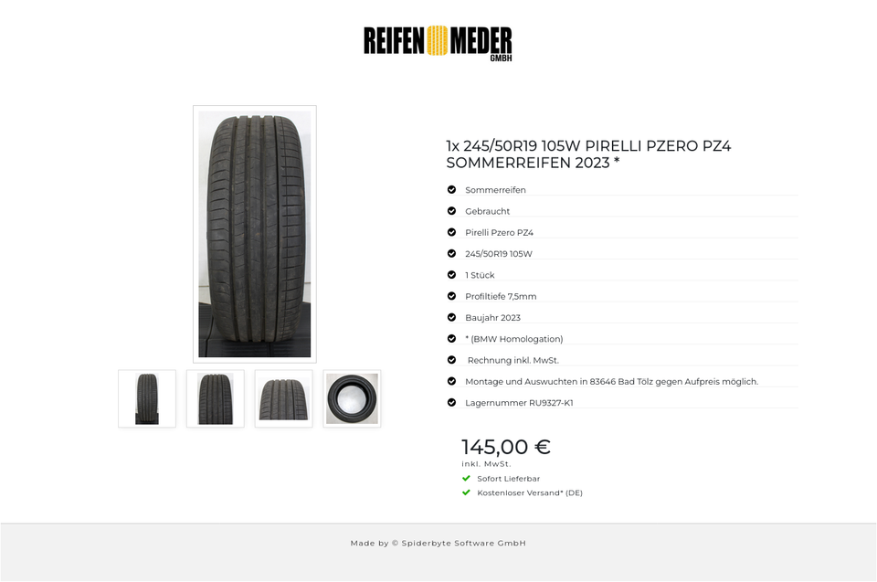 ★ KOSTENLOSER – VERSAND ★ Zum Verkauf steht ein gebrauchter Sommerreifen in der Größe 245/50R19 105W vom Hersteller Pirelli im Profil Pzero PZ4 * (BMW Homologation) Der Reifen ist aus der Produktion 2023. Die Profiltiefe beträgt 7,5mm. Die …