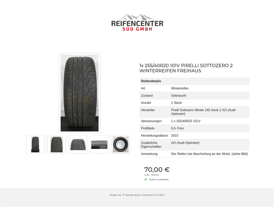 ► Anmerkung: Der Reifen hat Abschürfung an der Wulst. (siehe Bild)
