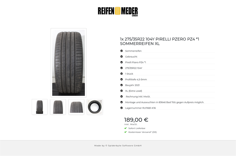 ★ KOSTENLOSER – VERSAND ★ Zum Verkauf steht ein gebrauchter Sommerreifen in der Größe 275/35R22 104Y vom Hersteller Pirelli im Profil Pzero PZ4 *1 XL (Extra Load) Der Reifen ist aus der Produktion 2021. Die Profiltiefe beträgt 4,5-5mm. Die …