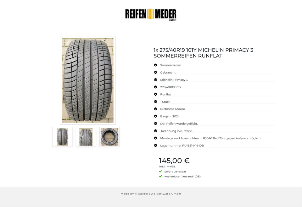 Der Reifen ist aus der Produktion 2021. Die Profiltiefe beträgt 6,5mm.