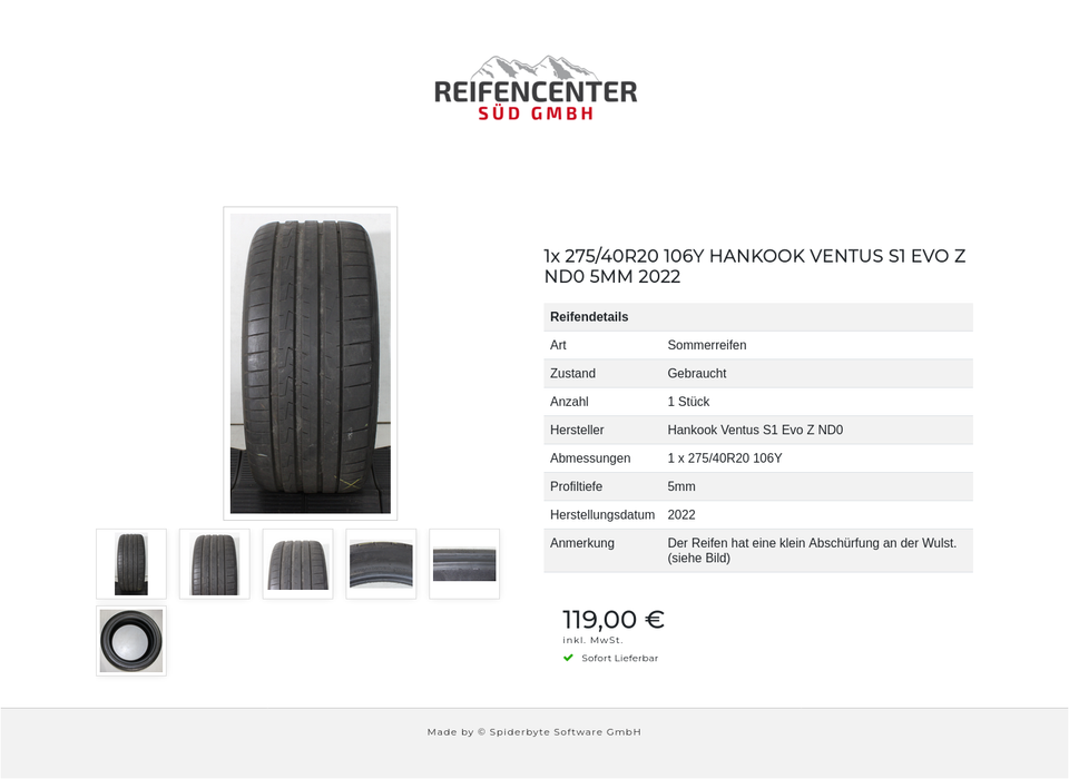 ► Anmerkung: Der Reifen hat eine klein Abschürfung an der Wulst. (siehe Bild)