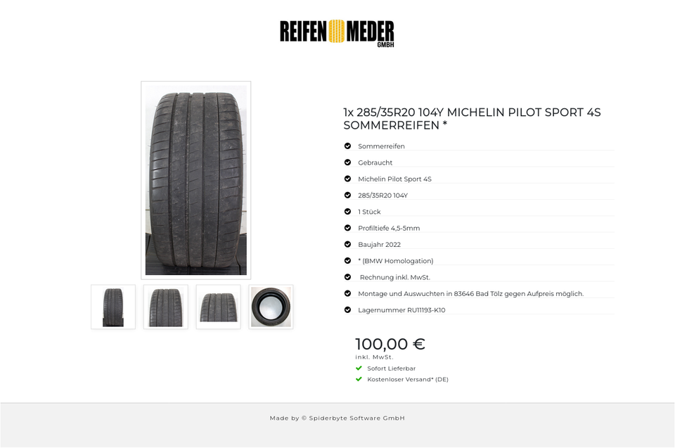 ★ KOSTENLOSER – VERSAND ★ Zum Verkauf steht ein gebrauchter Sommerreifen in der Größe 285/35R20 104Y vom Hersteller Michelin im Profil Pilot Sport 4S * (BMW Homologation) Der Reifen ist aus der Produktion 2022. Die Profiltiefe beträgt 4,5-5m…