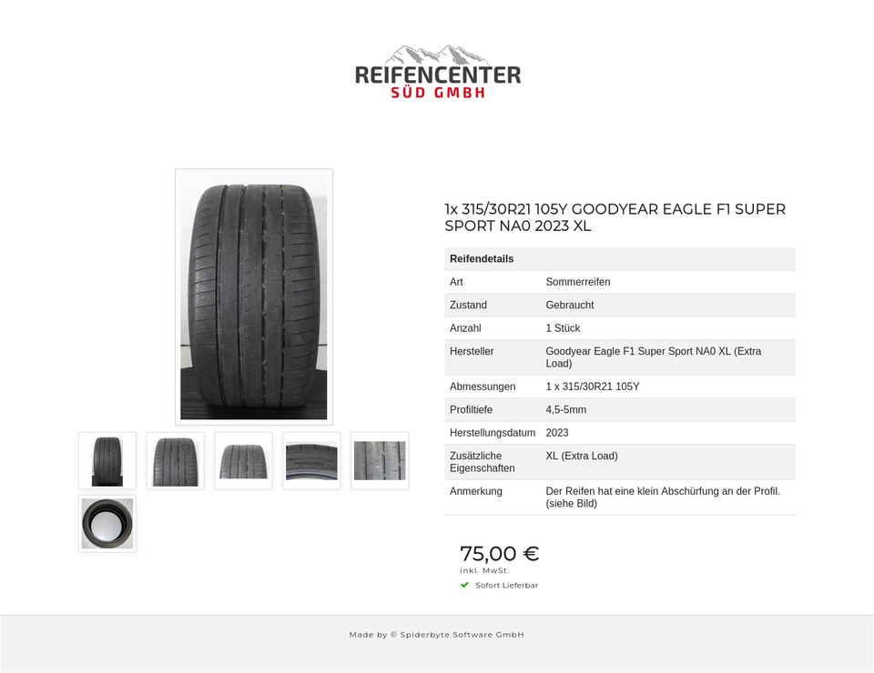 ► Anmerkung: Der Reifen hat eine klein Abschürfung an der Profil. (siehe Bild)