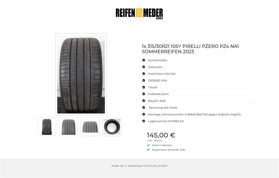 ★ KOSTENLOSER – VERSAND ★ Zum Verkauf steht ein gebrauchter Sommerreifen in der Größe 315/30R21 105Y vom Hersteller Pirelli im Profil Pzero PZ4 NA1 Der Reifen ist aus der Produktion 2023. Die Profiltiefe beträgt 5mm. Die Bezahlung ist durch…