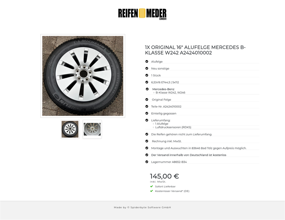 ★ KOSTENLOSER – VERSAND ★ Zum Verkauf steht eine neue original Mercedes-Benz Alufelge für die Modelle Mercedes-Benz – B-Klasse W242, W246 in der Größe 6,5Jx16H2 ET44,5 LZ5 LK112 Teile-Nr. A2424010002 Die Felge ist neu. Folgendes Zubehör gehör…