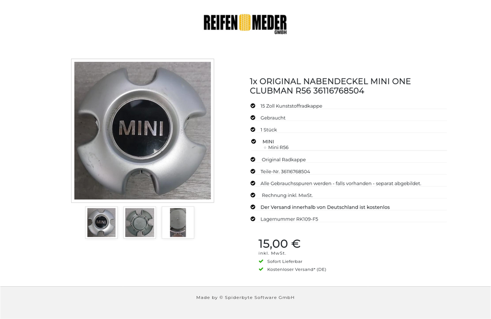 ★ KOSTENLOSER – VERSAND ★ Zum Verkauf steht eine gebrauchte original MINI Radkappe für die Modelle MINI – Mini R56 Die Radkappe ist gebraucht. Alle Gebrauchsspuren wurden separat abgebildet. Die Radkappe ist vom Hersteller MINI. Das Material is…