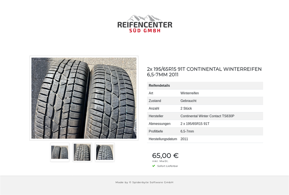2x 195/65R15 91T CONTINENTAL WINTERREIFEN 6,5-7MM 2011