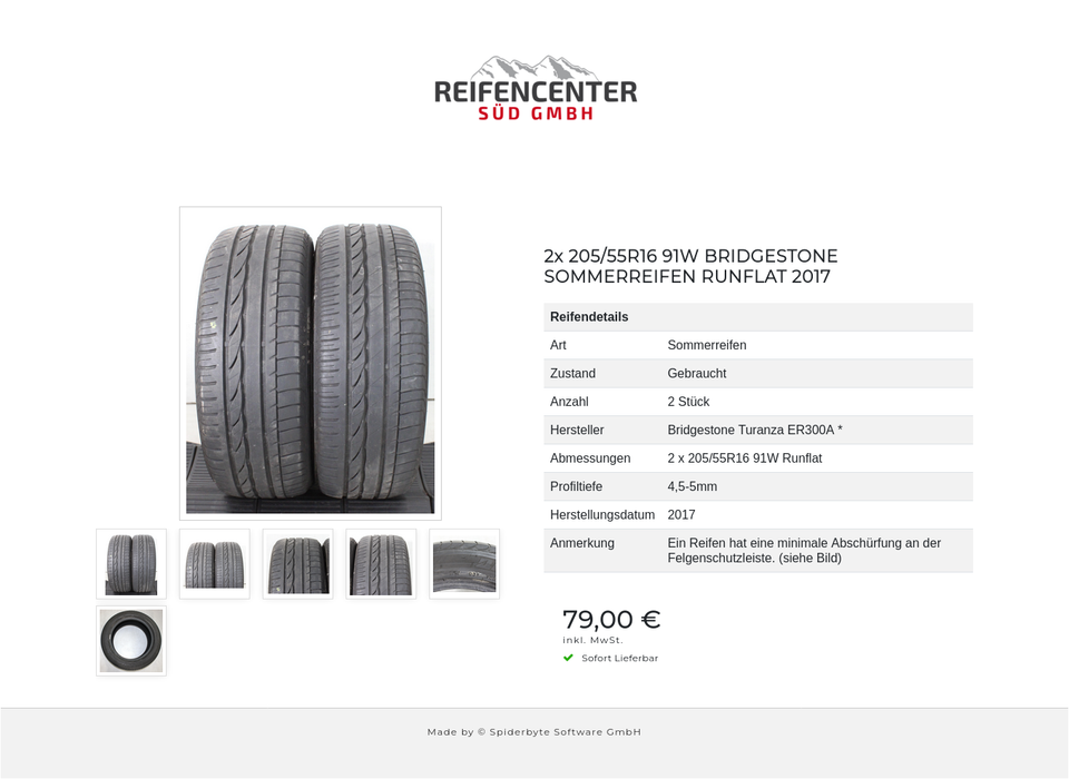 2x 205/55R16 91W BRIDGESTONE SOMMERREIFEN RUNFLAT 2017