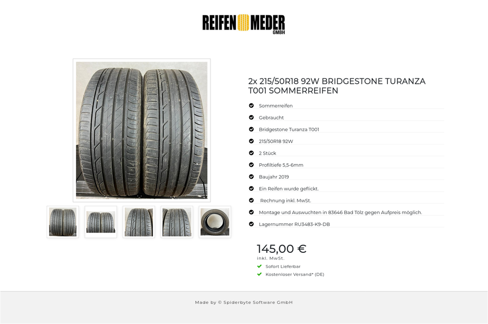 ★ KOSTENLOSER – VERSAND ★ Zum Verkauf stehen zwei gebrauchte Sommerreifen in der Größe 215/50R18 92W vom Hersteller Bridgestone im Profil Turanza T001 Die Reifen sind aus der Produktion 2019. Die Profiltiefe beträgt 5,5-6mm. Ein Reifen wurd…
