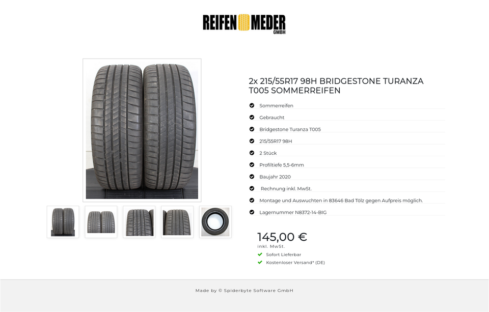 ★ KOSTENLOSER – VERSAND ★ Zum Verkauf stehen zwei gebrauchte Sommerreifen in der Größe 215/55R17 98H vom Hersteller Bridgestone im Profil Turanza T005 Die Reifen sind aus der Produktion 2020. Die Profiltiefe beträgt 5,5-6mm. Die Bezahlung i…