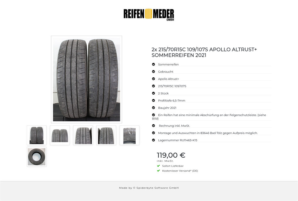 ★ KOSTENLOSER – VERSAND ★ Zum Verkauf stehen zwei gebrauchte Sommerreifen in der Größe 215/70R15C 109/107S vom Hersteller Apollo im Profil Altrust+ Die Reifen sind aus der Produktion 2021. Die Profiltiefe beträgt 6,5-7mm. Ein Reifen hat ein…