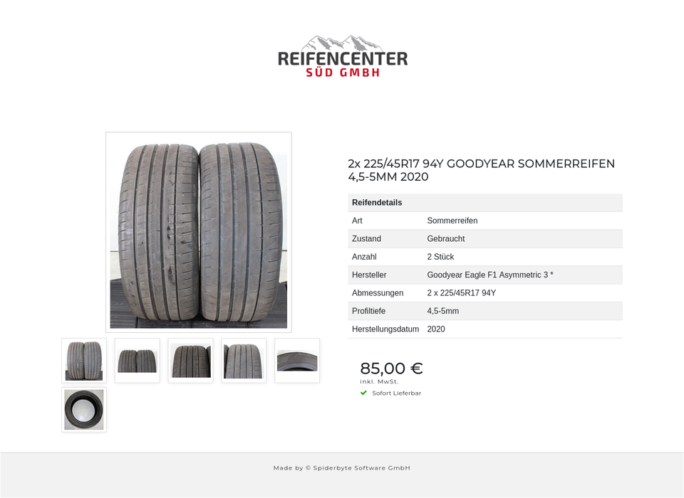 2x 225/45R17 94Y GOODYEAR SOMMERREIFEN 4,5-5MM 2020