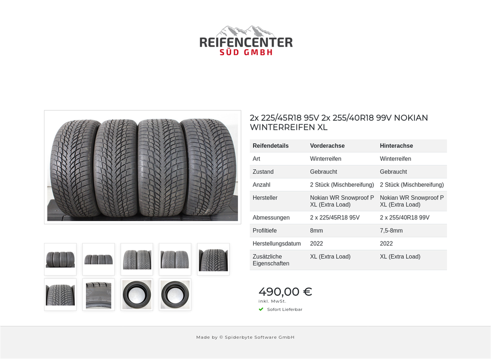 Schreibe die erste Rezension für „2x 225/45R18 95V 2x 255/40R18 99V NOKIAN WINTERREIFEN XL #1ZSR“