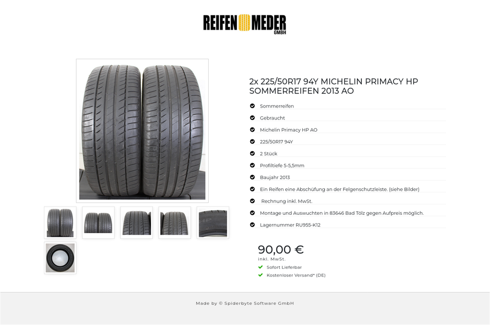 ★ KOSTENLOSER – VERSAND ★ Zum Verkauf stehen zwei gebrauchte Sommerreifen in der Größe 225/50R17 94Y vom Hersteller Michelin im Profil Primacy HP AO Die Reifen sind aus der Produktion 2013. Die Profiltiefe beträgt 5-5,5mm. Ein Reifen eine A…