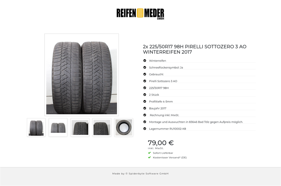 ★ KOSTENLOSER – VERSAND ★ Zum Verkauf stehen zwei gebrauchte Winterreifen in der Größe 225/50R17 98H vom Hersteller Pirelli im Profil Sottozero 3 AO mit Schneeflockensymbol Die Reifen sind aus der Produktion 2017. Die Profiltiefe beträgt 4-…