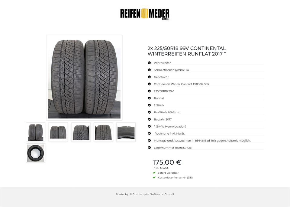 2x 225/50R18 99V CONTINENTAL WINTERREIFEN RUNFLAT 2017 * #1OCR