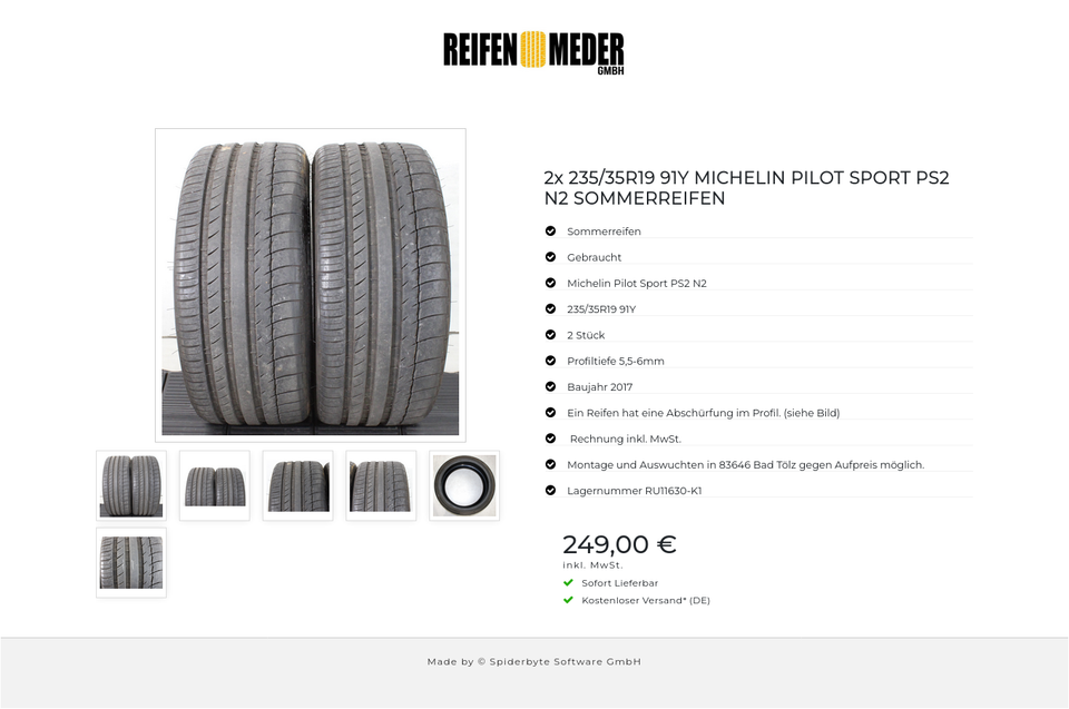 ★ KOSTENLOSER – VERSAND ★ Zum Verkauf stehen zwei gebrauchte Sommerreifen in der Größe 235/35R19 91Y vom Hersteller Michelin im Profil Pilot Sport PS2 N2 Die Reifen sind aus der Produktion 2017. Die Profiltiefe beträgt 5,5-6mm. Ein Reifen h…