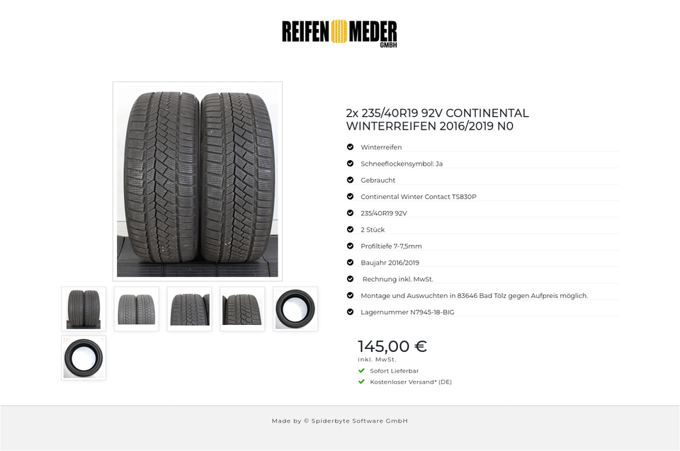 2x 235/40R19 92V CONTINENTAL WINTERREIFEN 2016/2019 N0 #1EUV