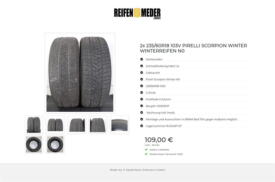 ★ KOSTENLOSER – VERSAND ★ Zum Verkauf stehen zwei gebrauchte Winterreifen in der Größe 235/60R18 103V vom Hersteller Pirelli im Profil Scorpion Winter N0 mit Schneeflockensymbol Die Reifen sind aus der Produktion 2016/2017. Die Profiltiefe …